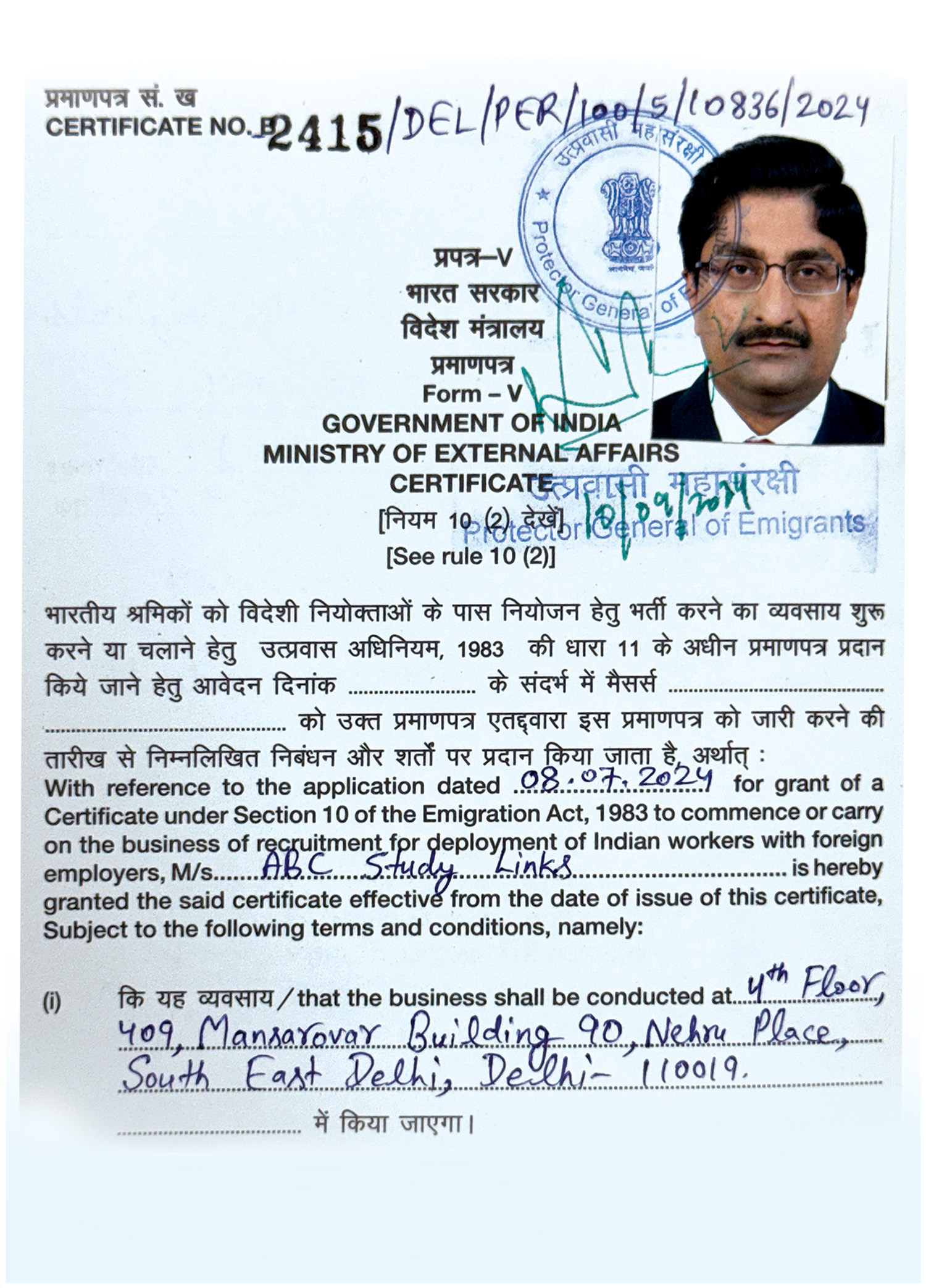 We are Approved by the Ministry of External Affairs, Government of India.